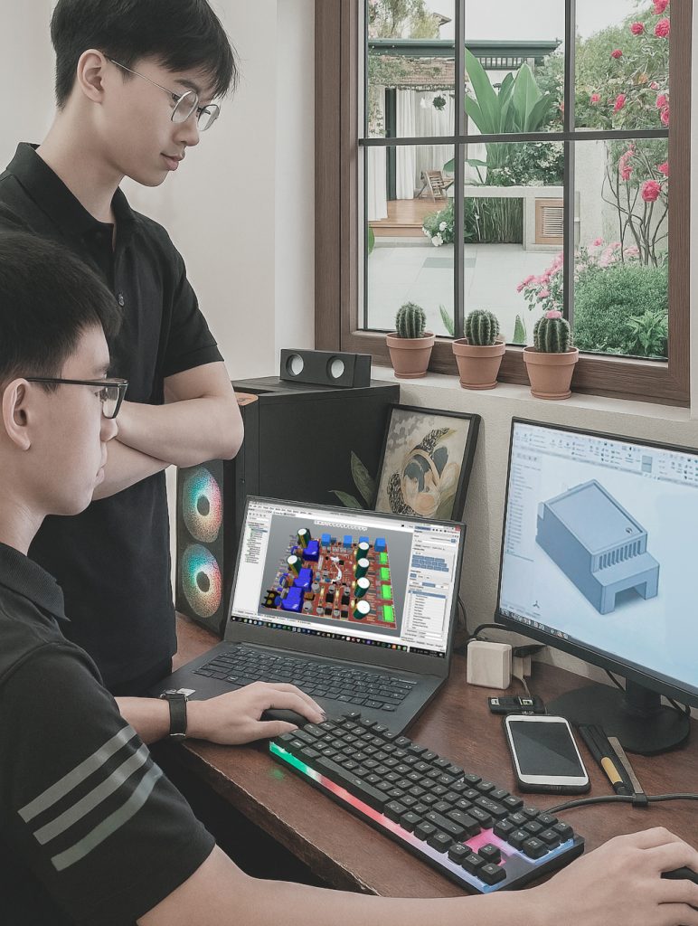 Dịch vụ thiết kế mạch điện tử chuyên nghiệp từ sơ đồ nguyên lý (Schematic) đến mạch in (PCB), giúp khách hàng có được sản phẩm tối ưu về hiệu suất và giá thành. Chúng tôi hỗ trợ thiết kế đa lớp, tối ưu đường mạch, kiểm tra EMC/EMI và đảm bảo khả năng sản xuất hàng loạt, nhận hàng sau 7 ngày.