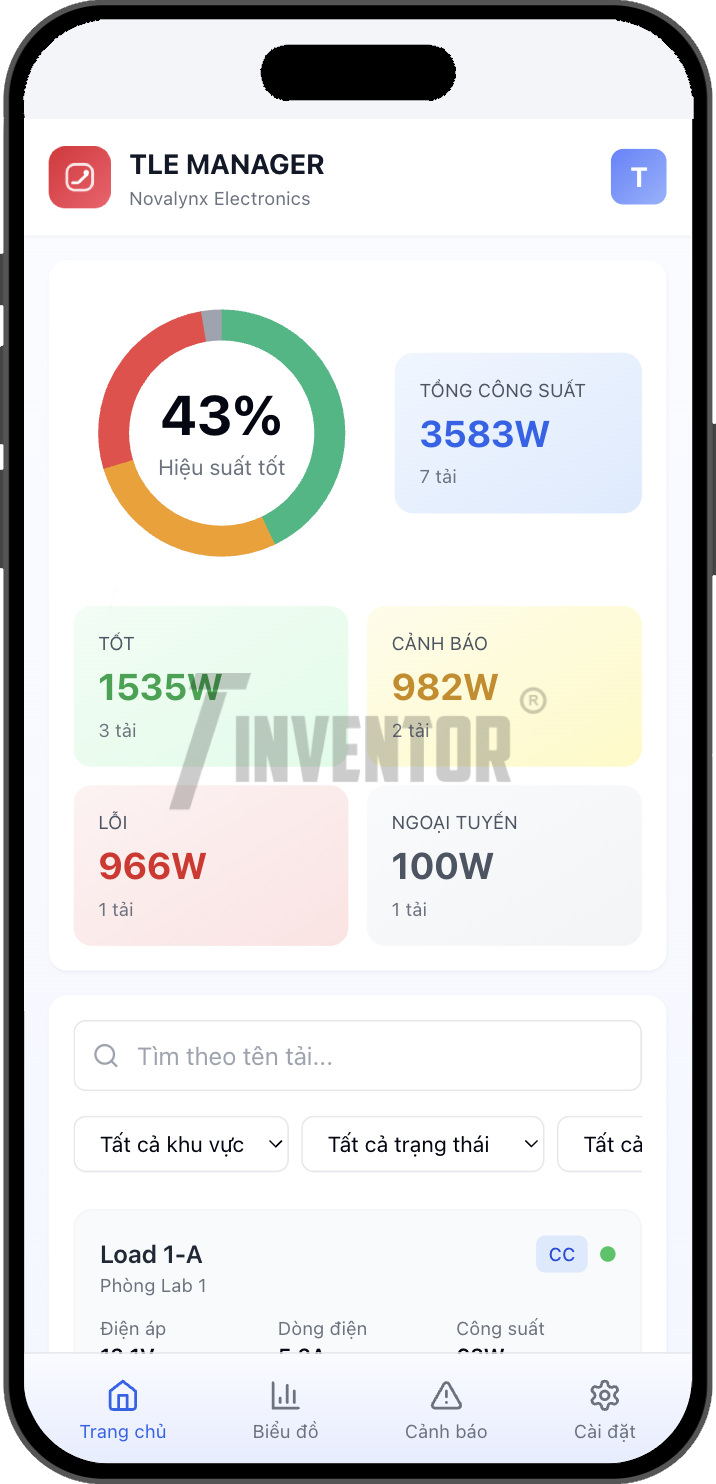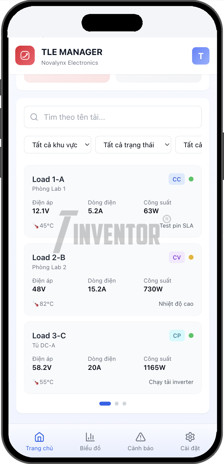 Thiết bị Tải điện tử – TinventorLoadElectronics (TLE) được thiết kế để mô phỏng tải thực trong các thử nghiệm chịu tải của nguồn điện 1 chiều là Ắc quy, Pin NLMT hay UPS. Với khả năng hoạt động linh hoạt ở nhiều chế độ như CC (dòng không đổi), CV (áp không đổi), CR (trở không đổi), CP (công suất không đổi), sản phẩm đáp ứng đầy đủ các nhu cầu kiểm tra hiệu suất và độ bền của thiết bị nguồn. TLE cung cấp giao diện người dùng trực quan cho phép dễ dàng cài đặt, theo dõi mức tiêu thụ năng lượng liên tục, phục vụ công tác kiểm tra, đánh giá và chứng nhận sản phẩm. Ngoài ra Thiết bị còn đi kèm bộ ứng dụng điều khiển AppMobile và WebTool, cho phép người dùng Quản lý tập trung, Theo dõi và Điều khiển thiết bị linh hoạt từ bất kỳ đâu.