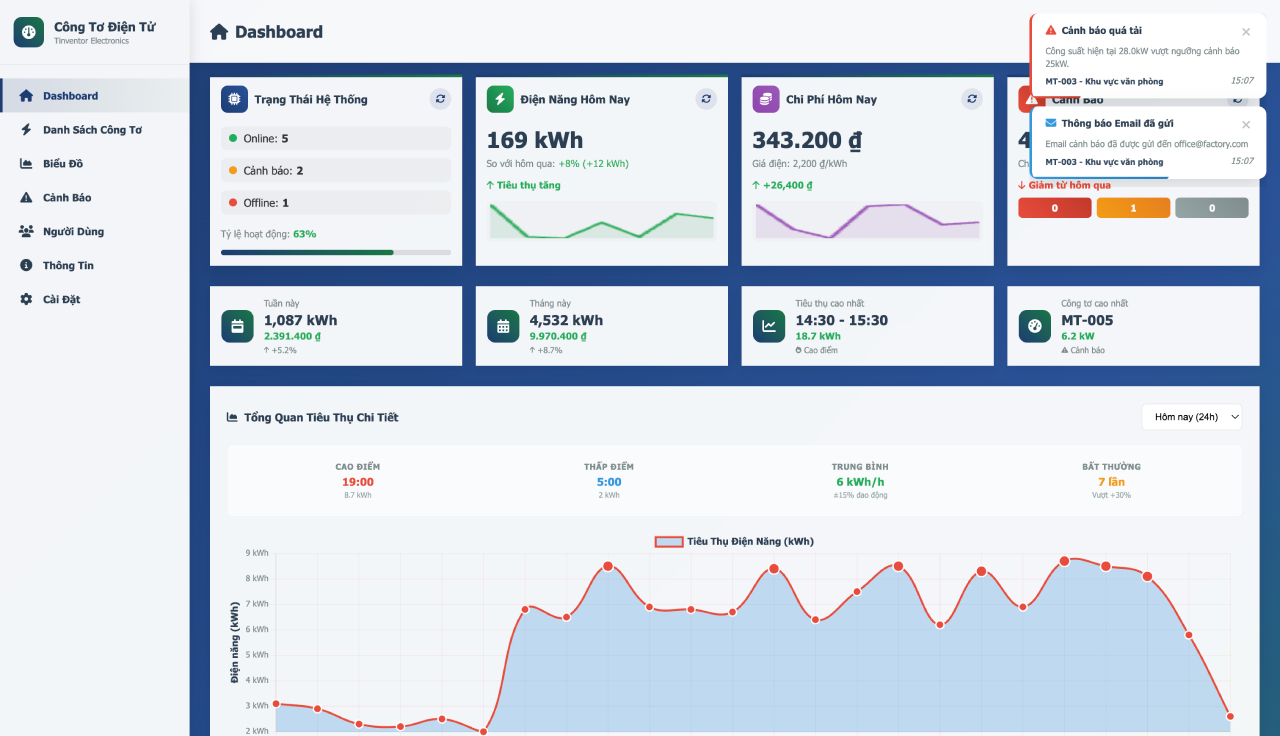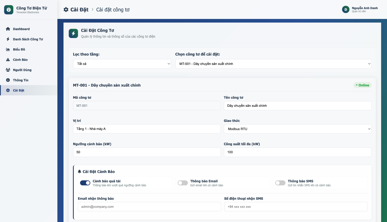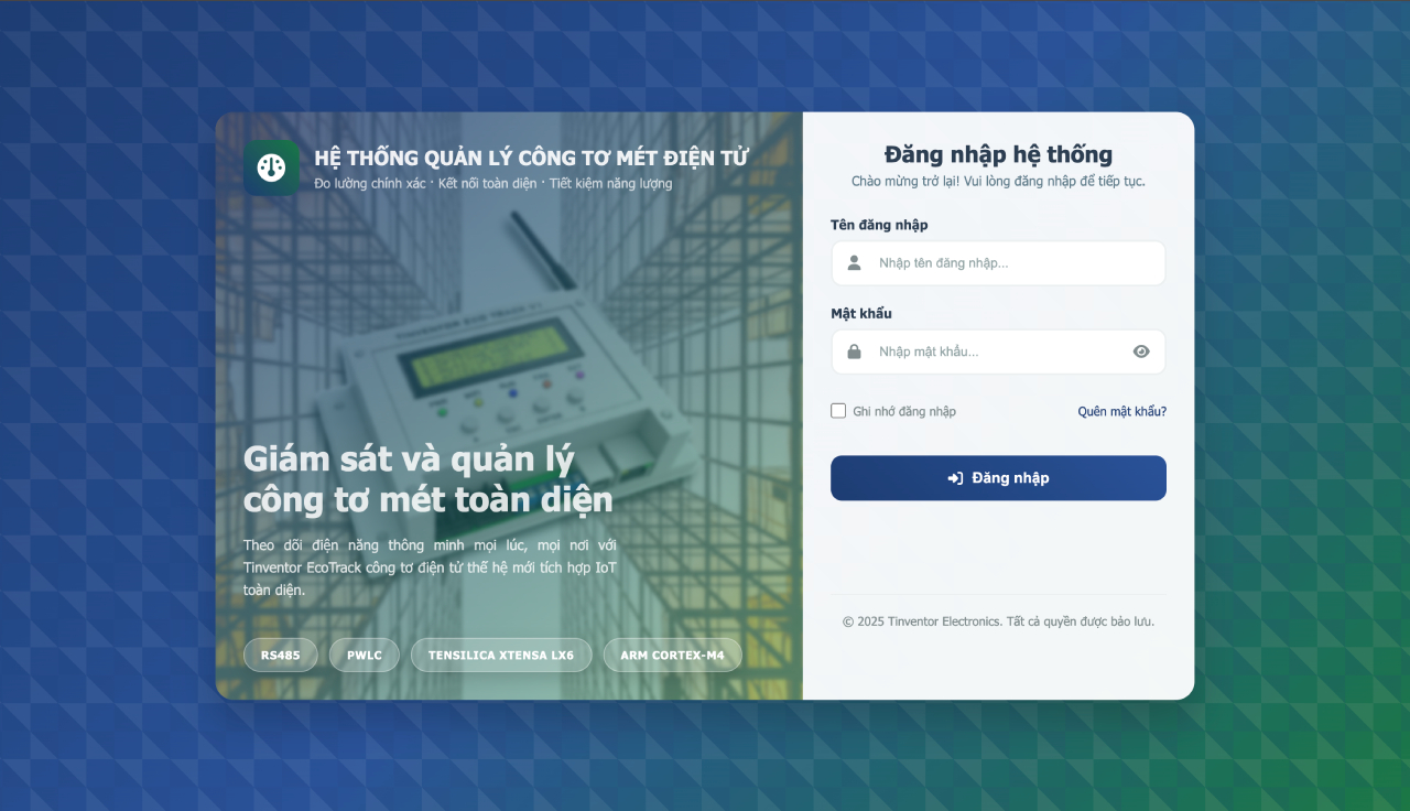Đi kèm với thiết bị là một hệ sinh thái phần mềm hoàn chỉnh, bao gồm Ứng dụng di động (hỗ trợ song ngữ Anh/Việt) và Website quản lý hiện đại, giúp việc giám sát và vận hành hệ thống nhiều công tơ trở nên đơn giản và hiệu quả.